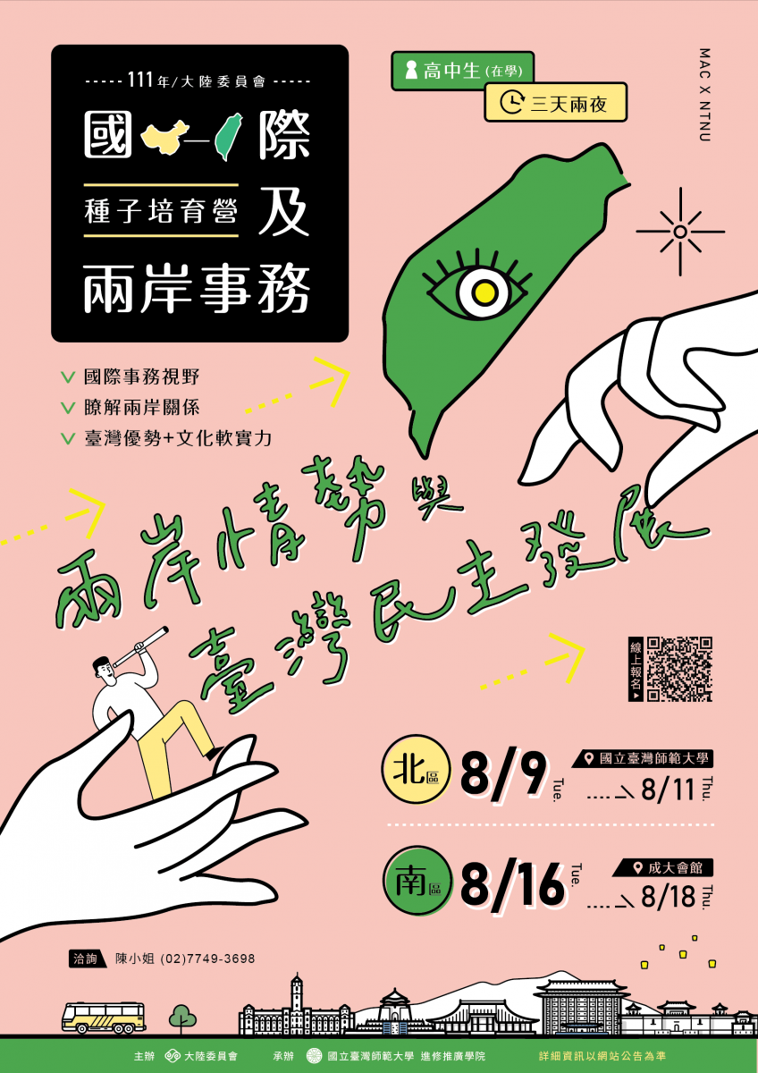 國立臺灣師範大學辦理大陸委員會「111年國際及兩岸事務種子培育營(兩岸情勢與臺灣民主發展)」