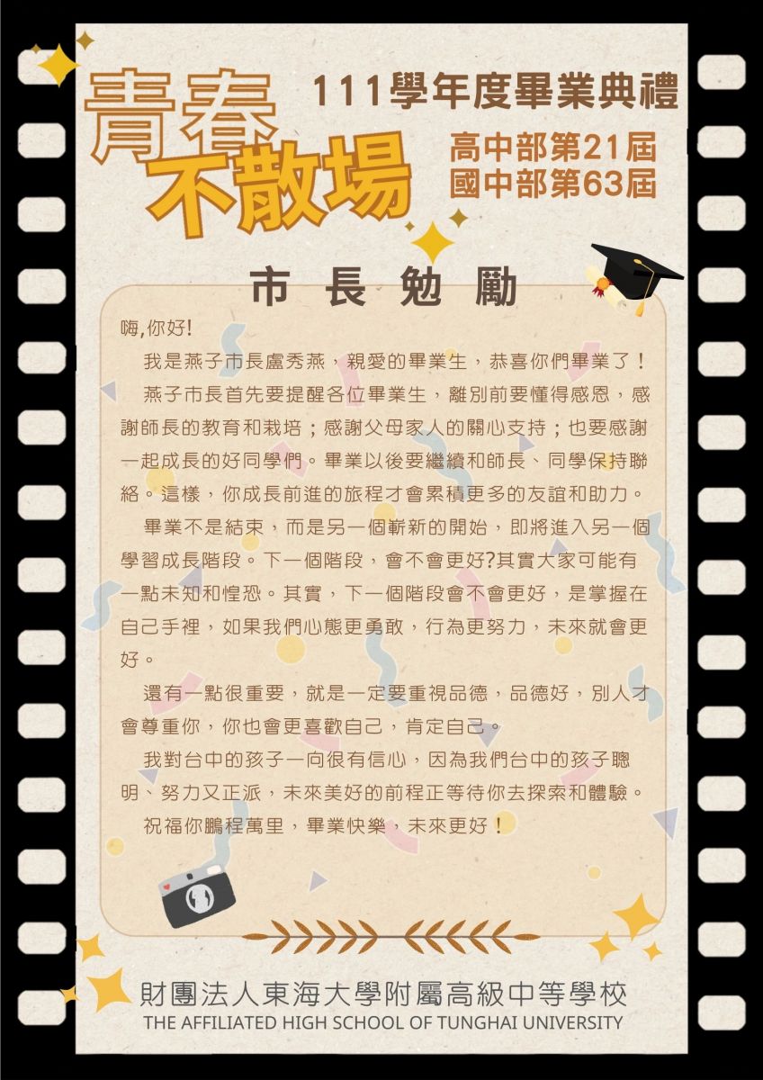財團法人東海大學附屬高級中等學校--附中新聞-111學年度畢業典禮