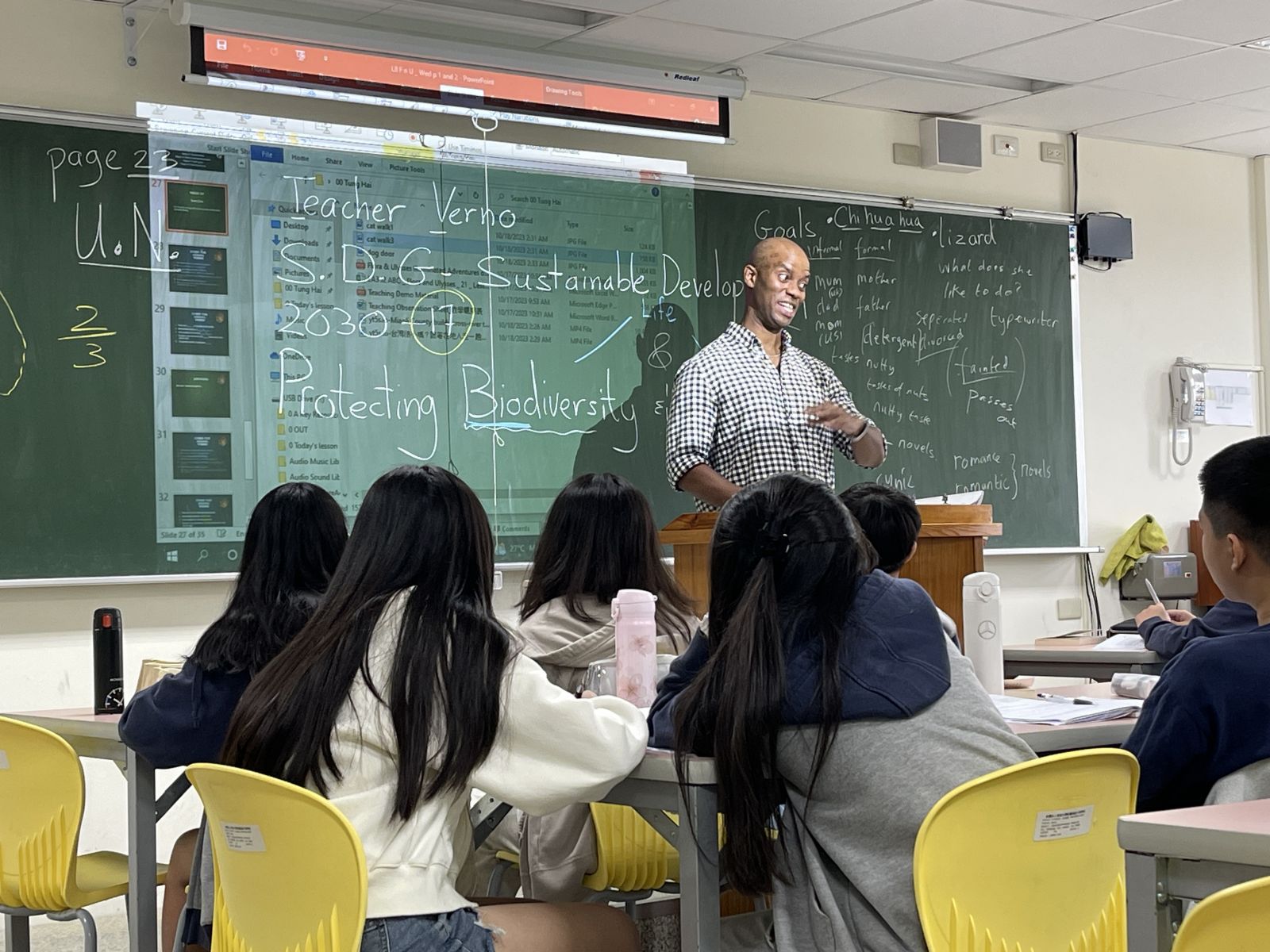臺中,2023年10月18日 - 東大附中國際教育處今日成功舉辦了一場具有深遠意義的教學觀摩活動,該活動旨在提供國際教育處的外籍教師們一個難得的機會,透過觀察和參與其他教師的教學和學習過程,以獲得新的啟發和經驗。這次觀摩活動由Vernon老師擔任示範者,參與的教師包括了陳怡誠主任、黃鐦逸老師、戴倫(Christopher)老師、Clark Lee老師和Daniel老師。