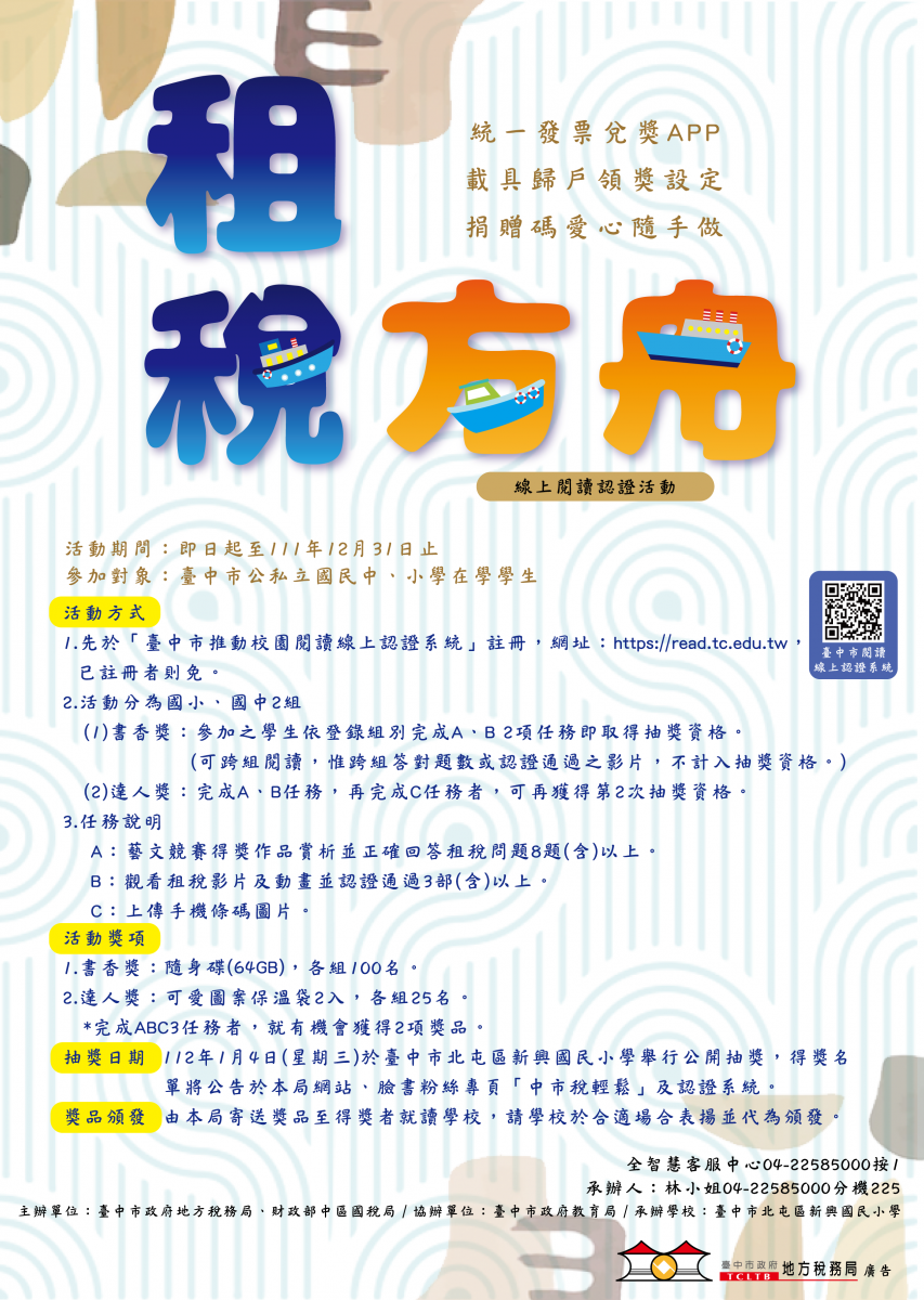臺中市政府地方稅務局辦理「租稅方舟」線上閱讀抽獎活動