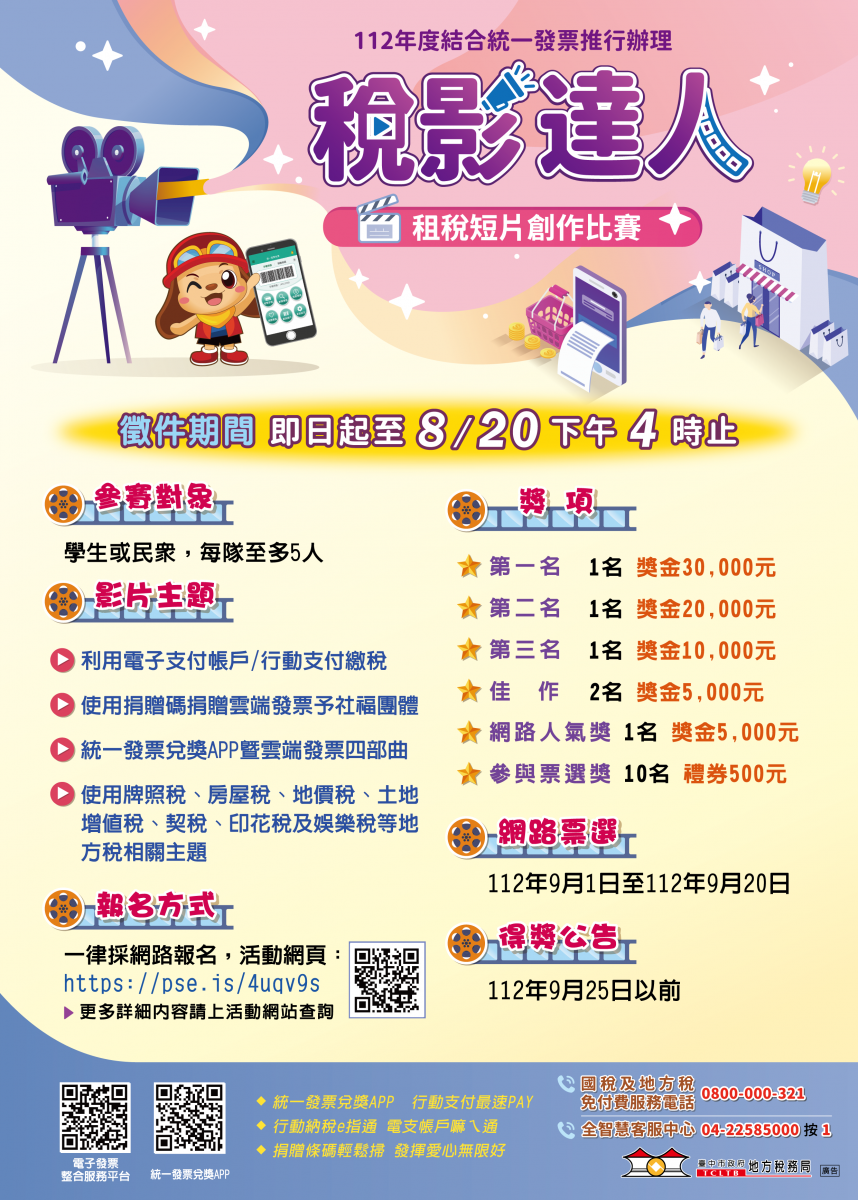 臺中市政府地方稅務局辦理(112)年度「稅影達人」租稅短片創作比賽