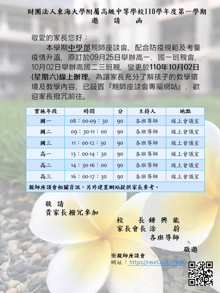 東大附中110學年度線上親師座談會