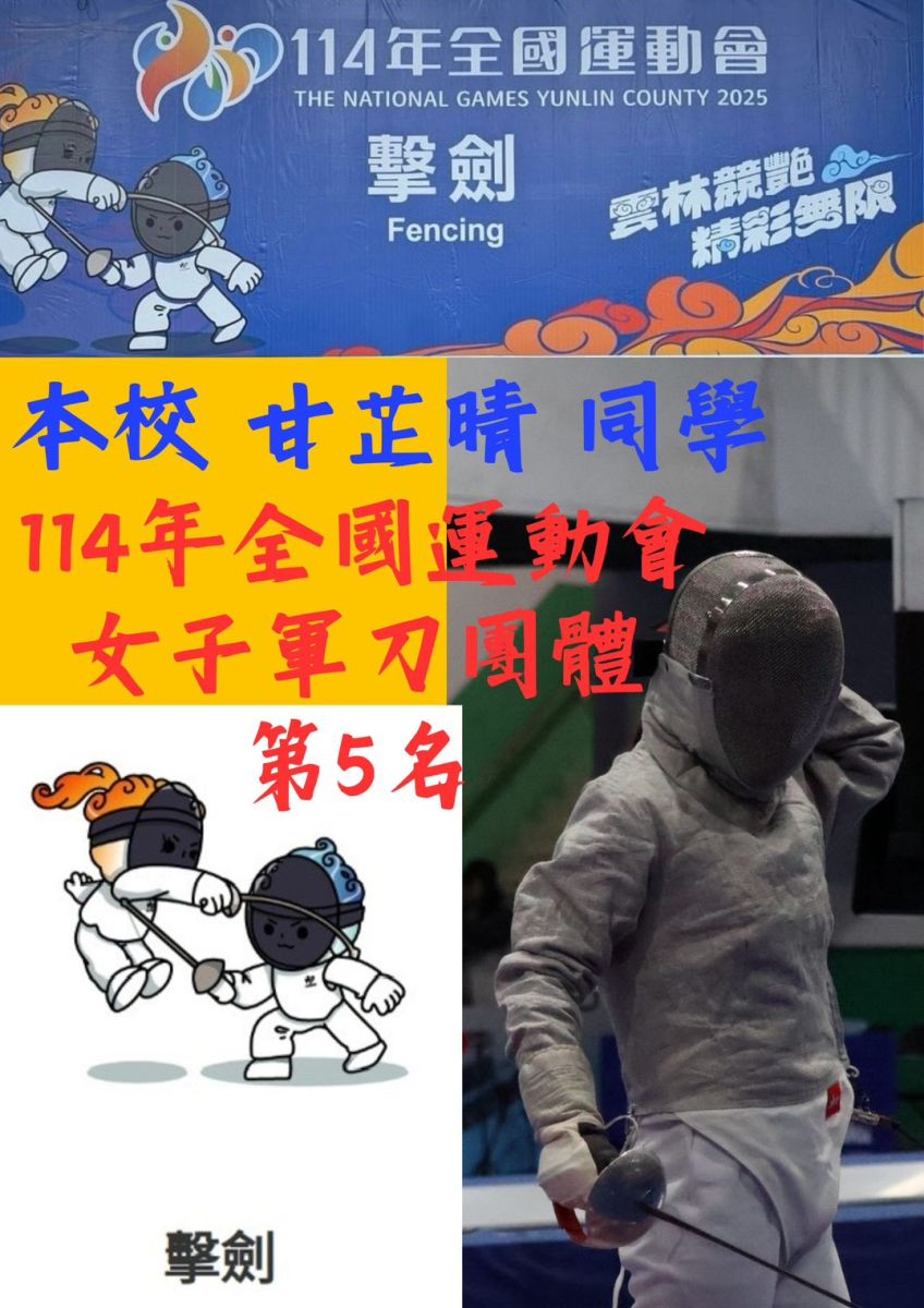 財團法人東海大學附屬高級中等學校--榮譽榜-全國運動會第五名-擊劍