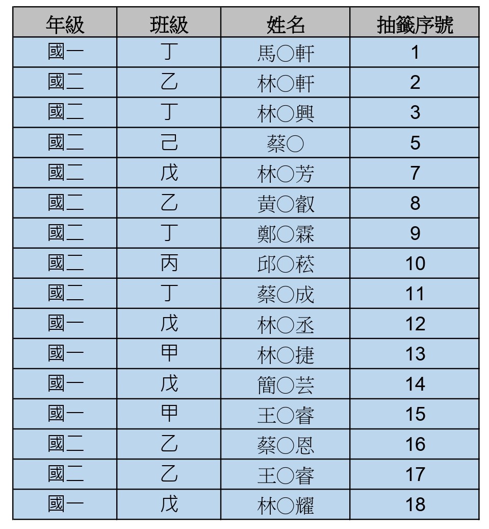 經公告正取名單後,完成後續繳費、填電子表單作業之學生如下列