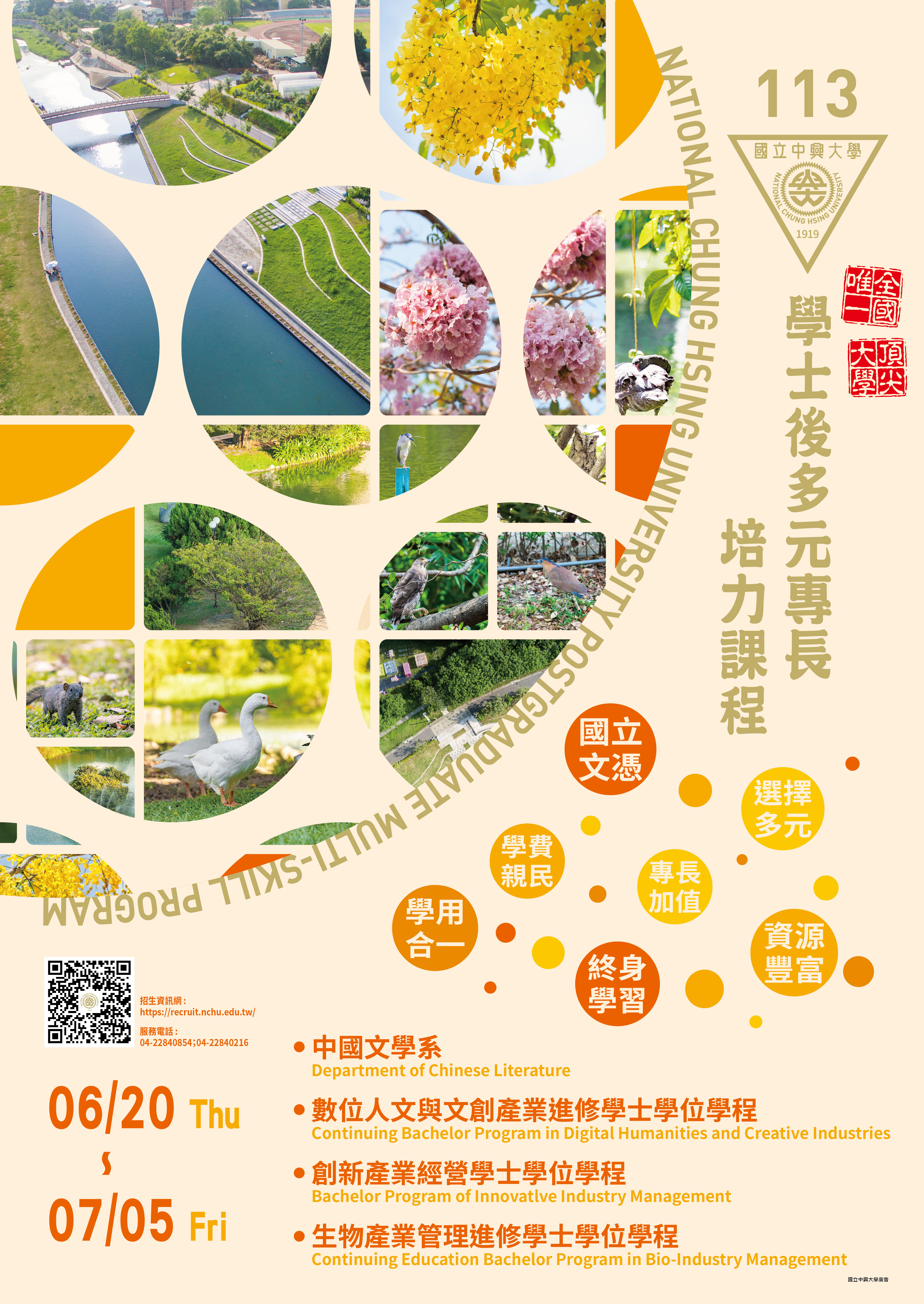 國立中興大學113學年度進修學士班、學士後多元專長培力課程之招生
