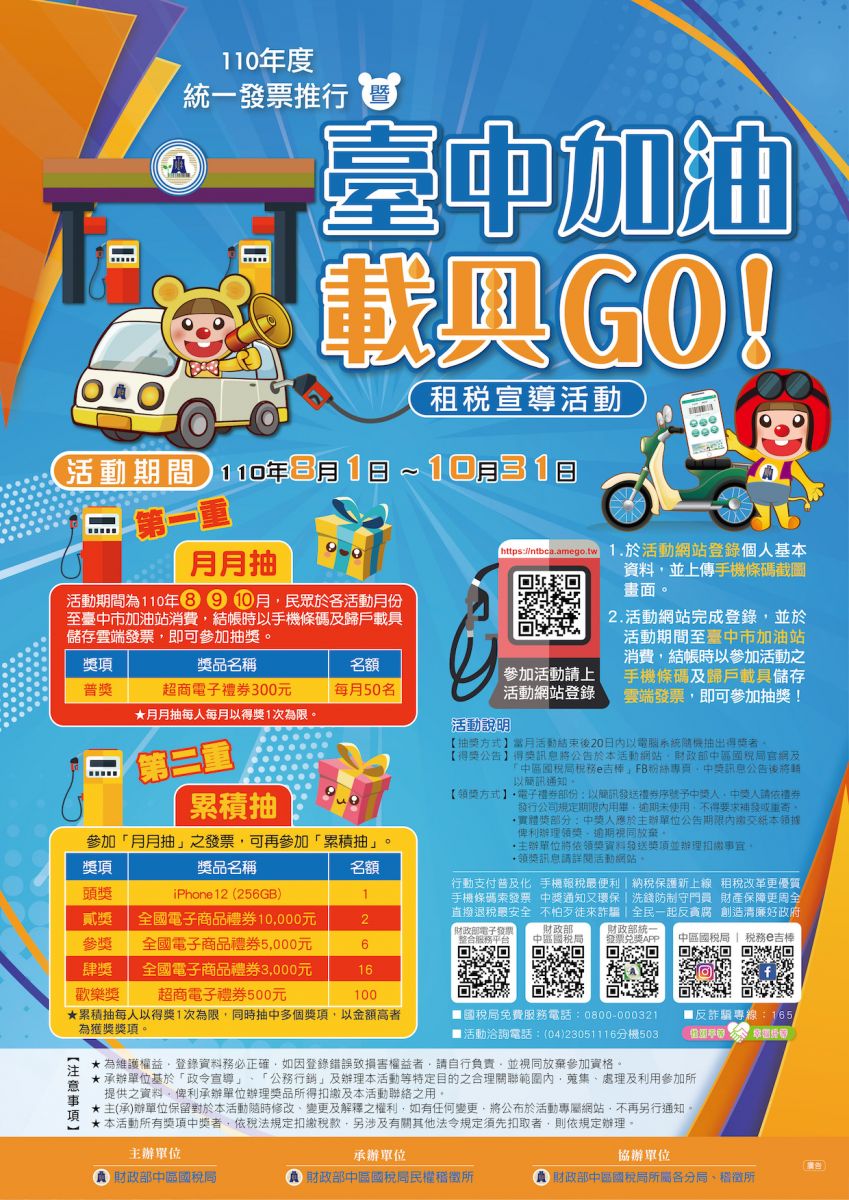 轉知財政部中區國稅局民權稽徵所舉辦統一發票推行暨「臺中加油 載具GO!」租稅 宣導活動