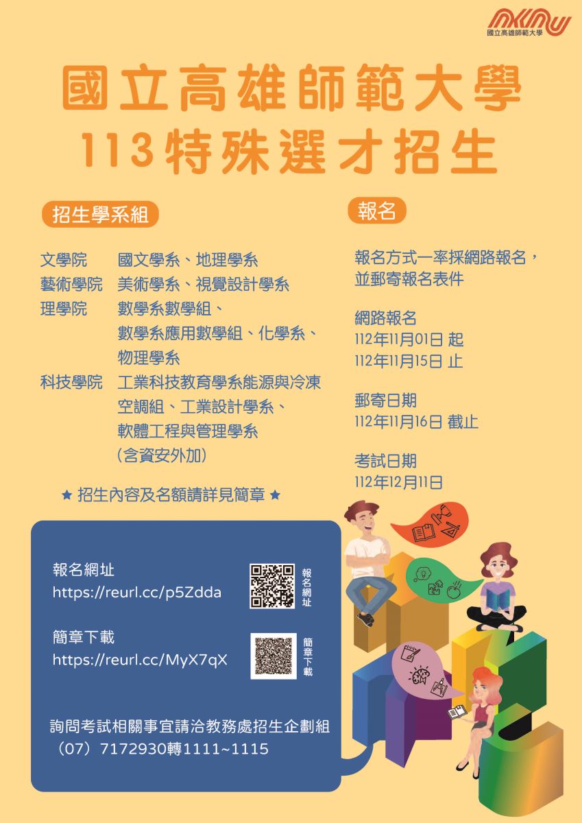 國立高雄師範大學113學年度大學「特殊選才」招生