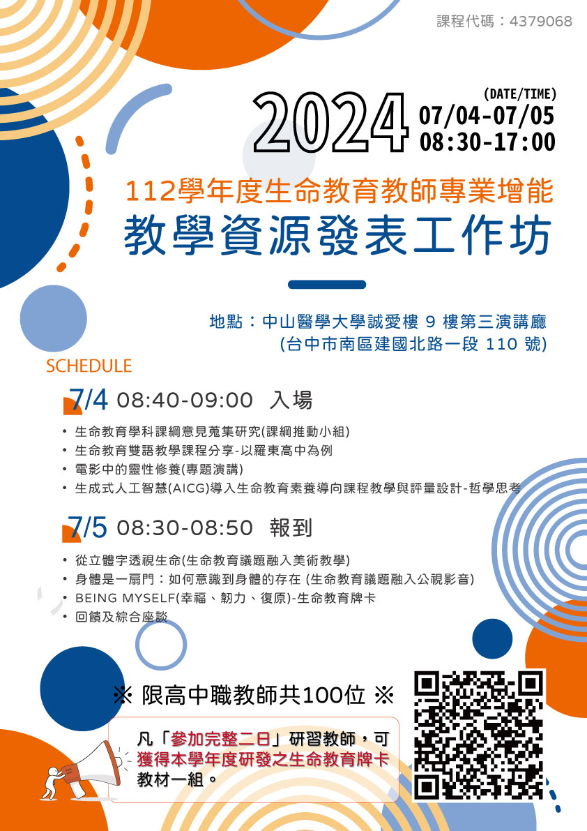 112學年度生命教育教師專業增能:教學資源發表工作坊