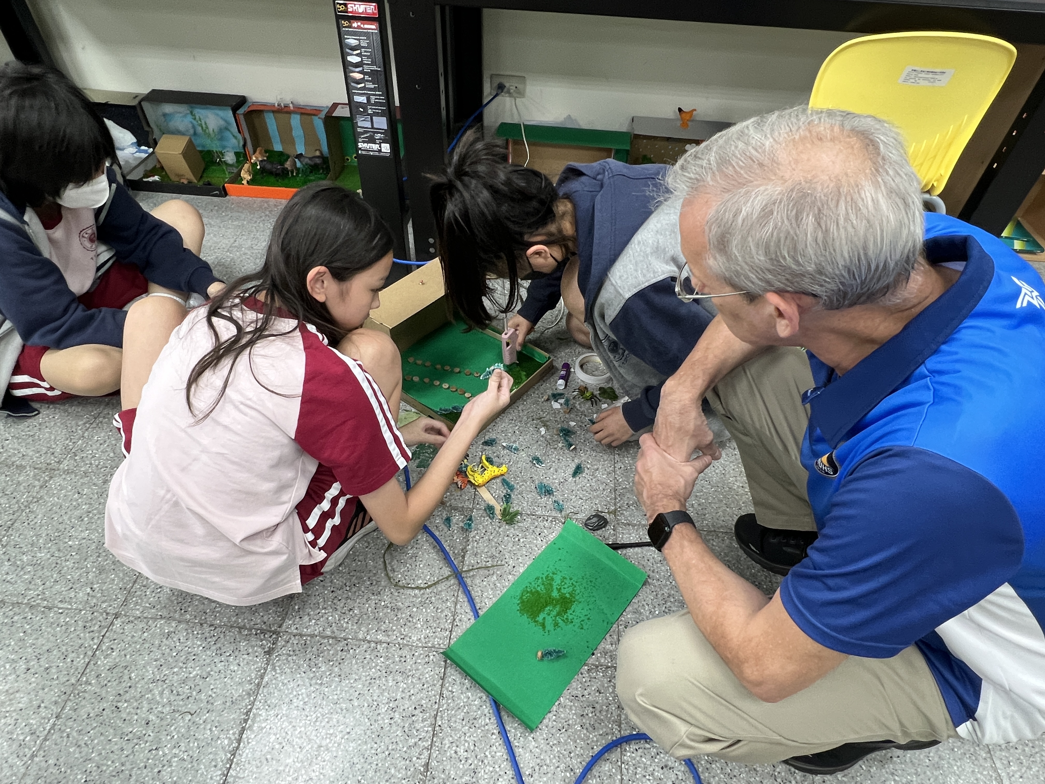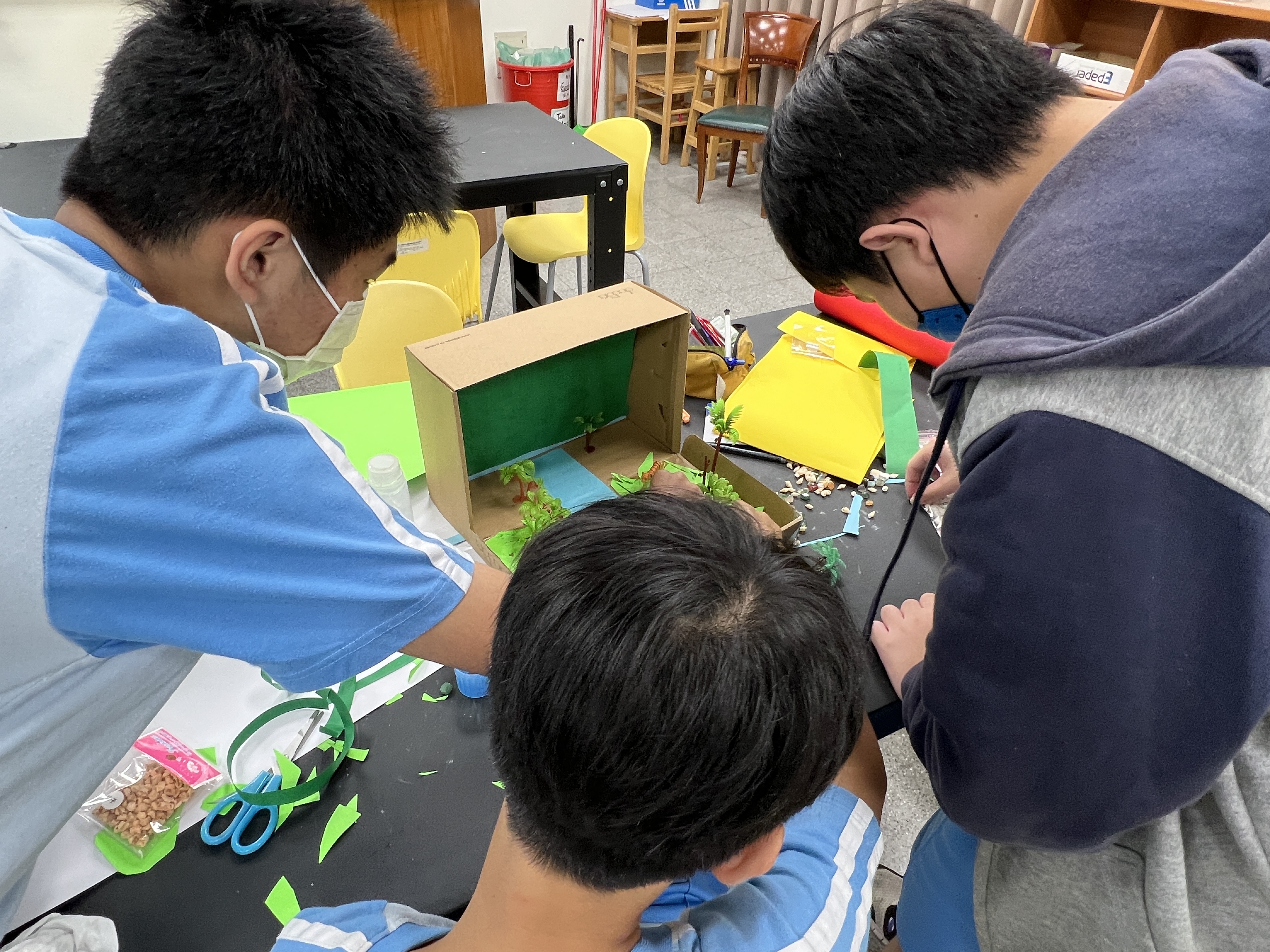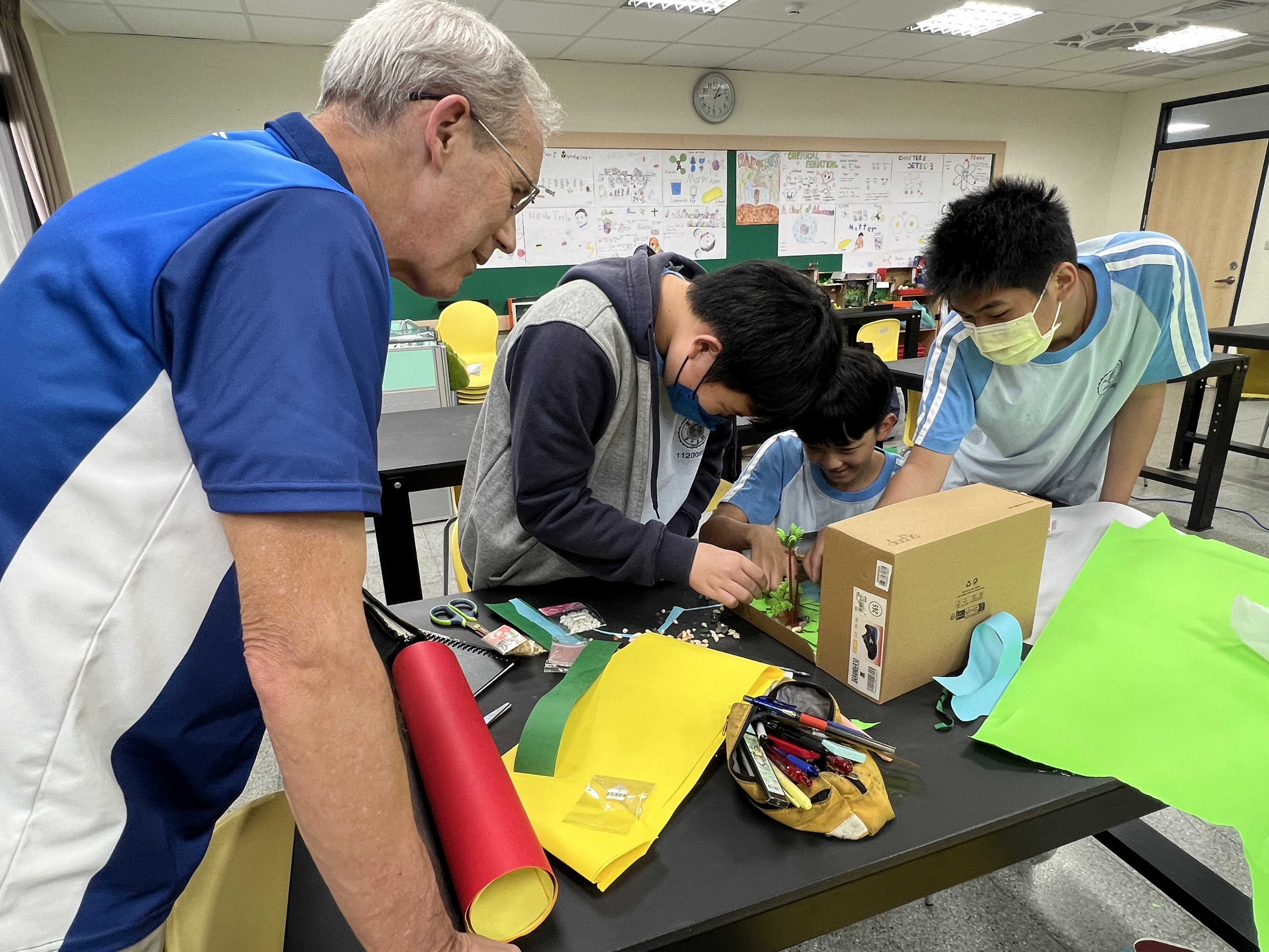 東大附中國際教育處鼓勵外籍教師,積極提升教學品質及學科專業水準。近期,科學教師Xavier, David S與Hanny. 正在進行一場生態鞋盒的專案,旨在豐富 ESL 課程學生的學習體驗。透過實作課程,不僅提供了多元教學方式,更擴展了學生的知識內容。此舉也是國際教育處共享教學資源的一部分,旨在提升全體外籍教師的教學技巧,為學生帶來更豐富有趣的學習內容。