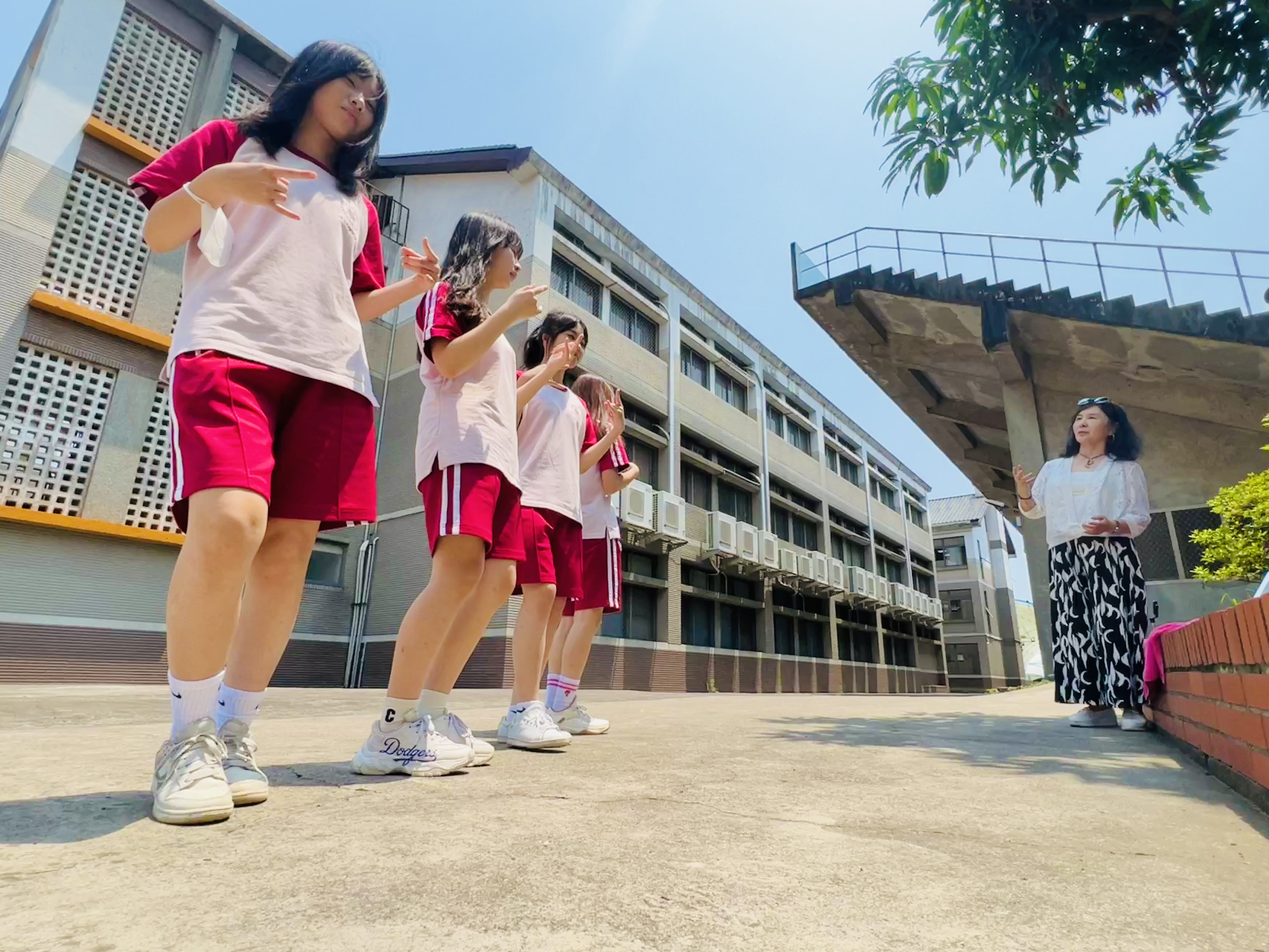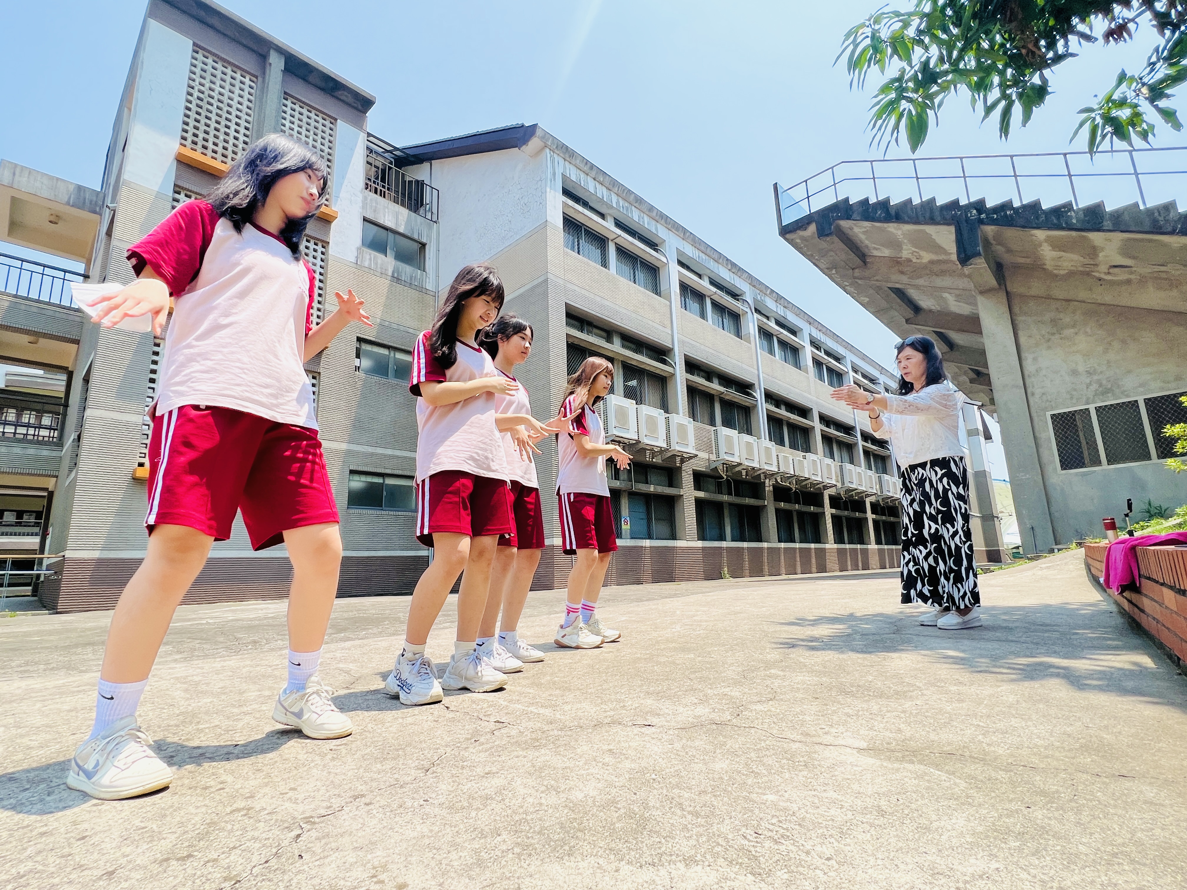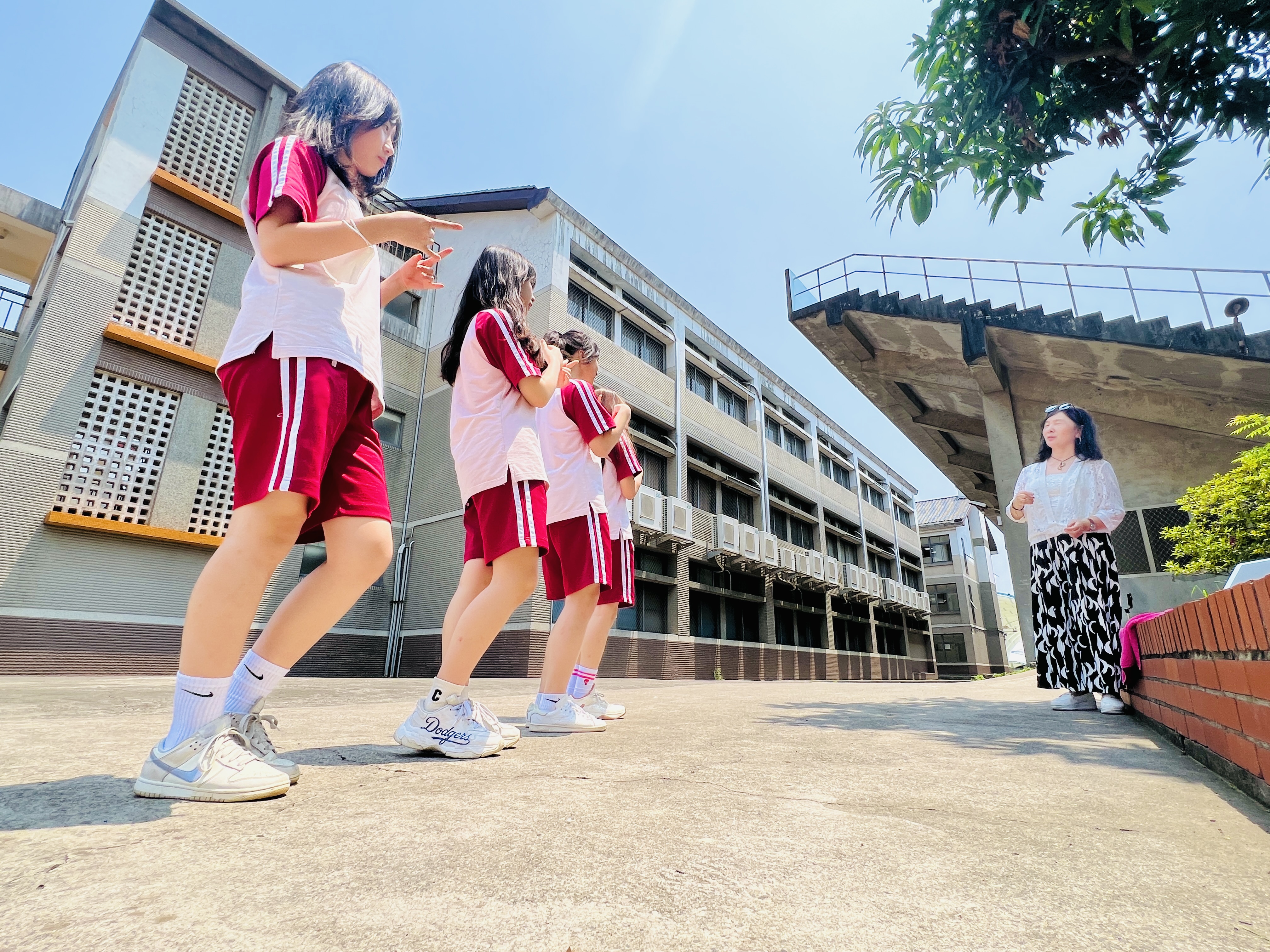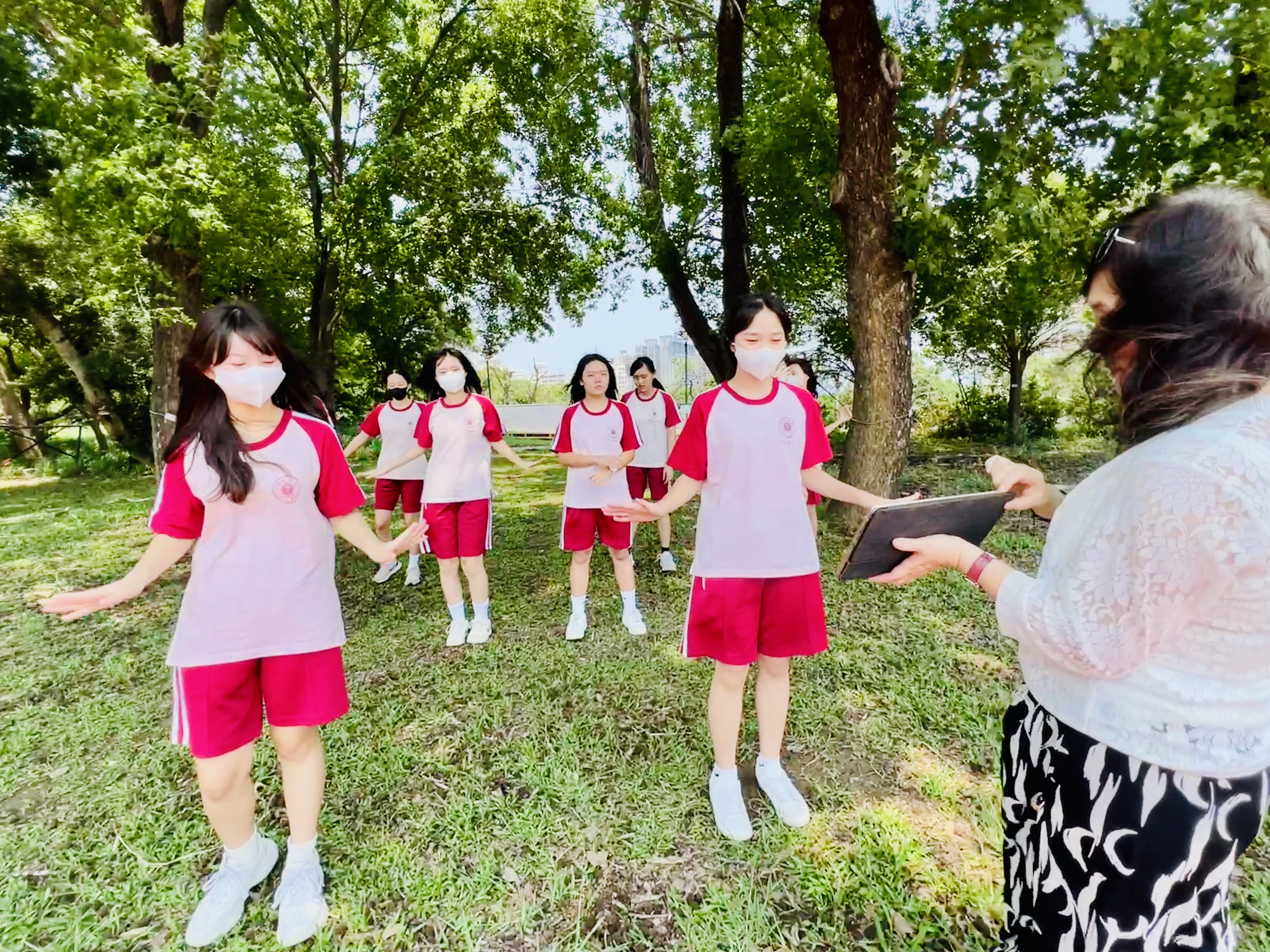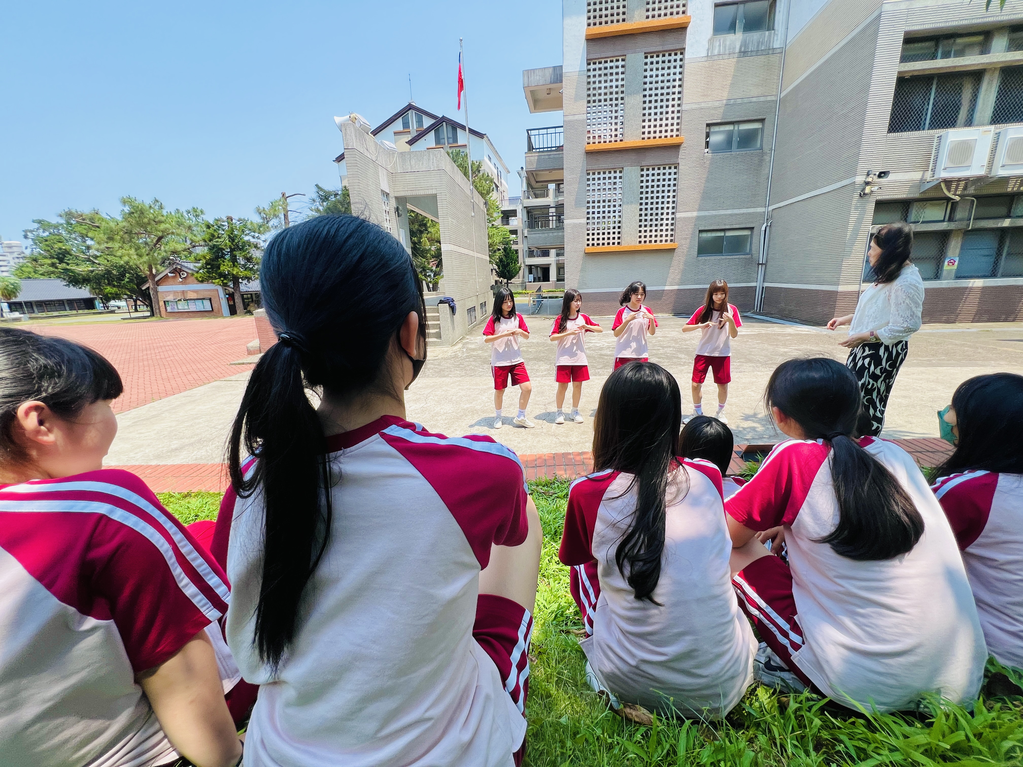 在4月29日中午的午休時間,學生們齊聚於校操場,投入了Candace老師的表演藝術課程。這些學生來自國二各班,包括J2A的Mandy Chiang、J2B的Winnie Hung和Daisy Kao,以及J2C的Lilian Wang、Amber Chu、Yucen Wu、Yvonne Lee、Hannah Hsu、Jenny Chen、Athena Chen和Momo Liu。透過Candace老師的專業指導,這些學生們在課程中展現了高度的投入與學習熱情。