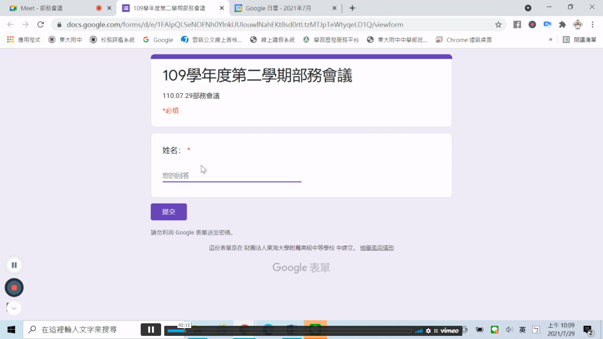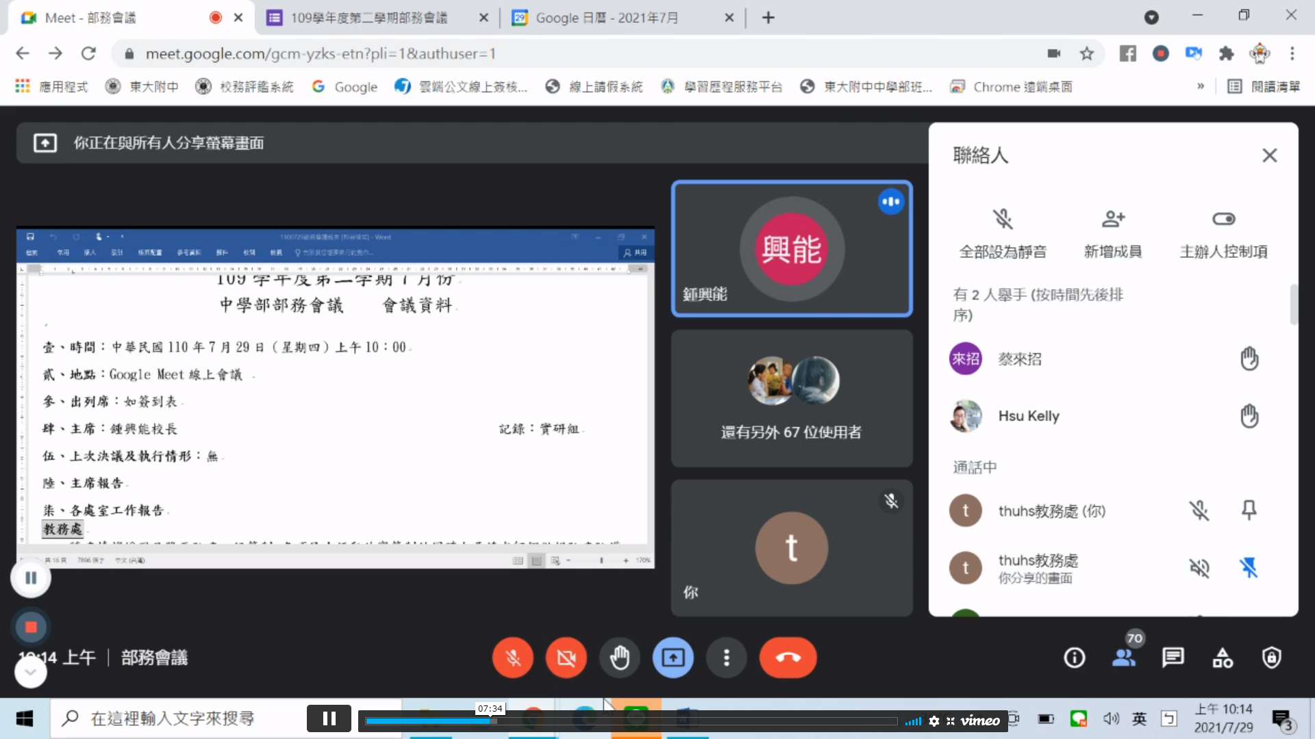 部務會議-110.07.29 七月份部務會議(線上)