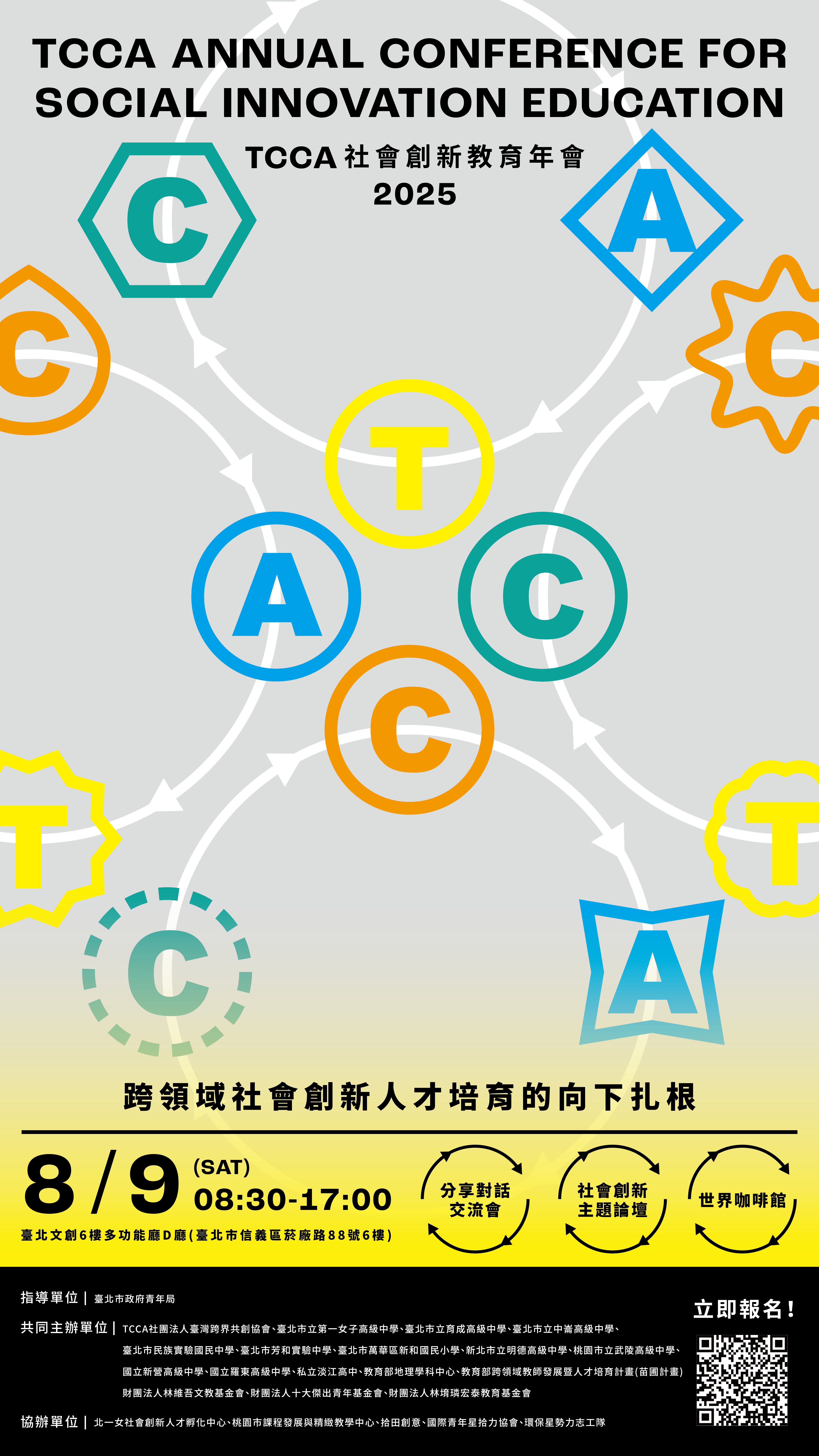 主旨:本校與TCCA社團法人臺灣跨界共創協會共同舉辦創新教育 年會活動,敬邀貴校師生參與,請查照並協助公告周 知。