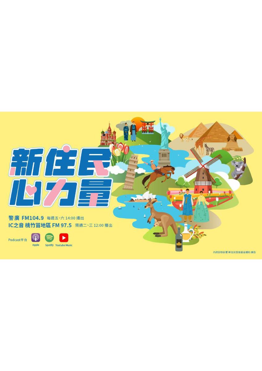 二、為保障新住民媒體近用權,內政部移民署委外製播新住民多元文化廣播節目,每週五、六下午2時於警察廣播電臺FM104.9頻道播出;另於地方電臺重播,時間為每週二、三中午12時於IC之音桃竹苗地區FM97.5頻道播出。錄製完成之節目也會置於各大Podcast平臺,供民眾收聽。