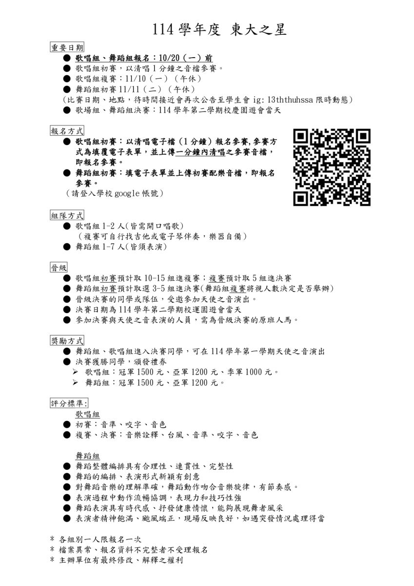 114學年東大之星比賽辦法