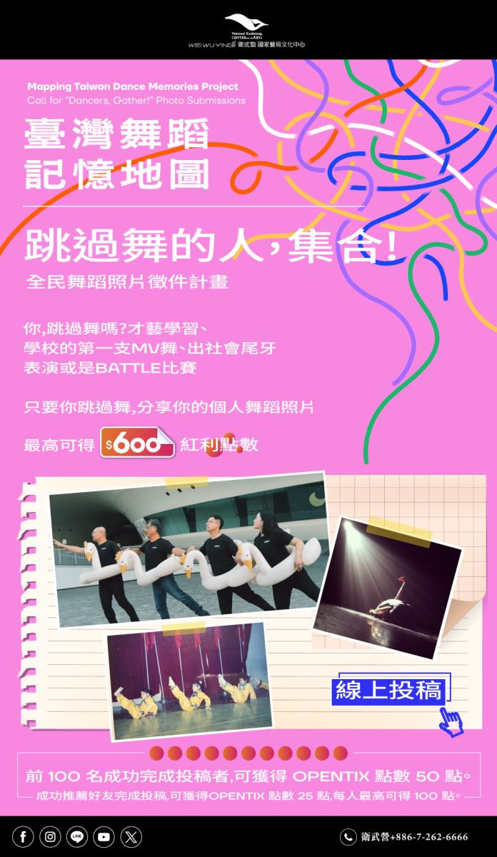 轉知舞蹈歷史「臺灣舞蹈記憶地圖」計畫115年度「舞蹈書寫工作坊」及「跳過舞的人,集合!」全民舞蹈照片徵件活動