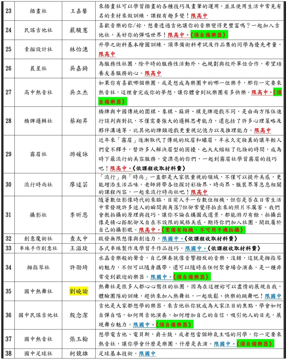 - 社團介紹一覽表如下: