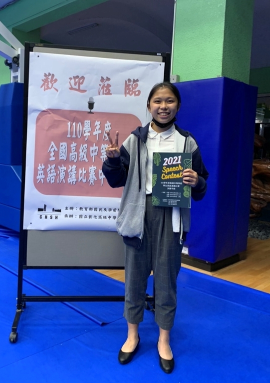 賀~本校高一丁班洪立穎同學參加110年度全國高級中等學校學生英語演講比賽榮獲優勝