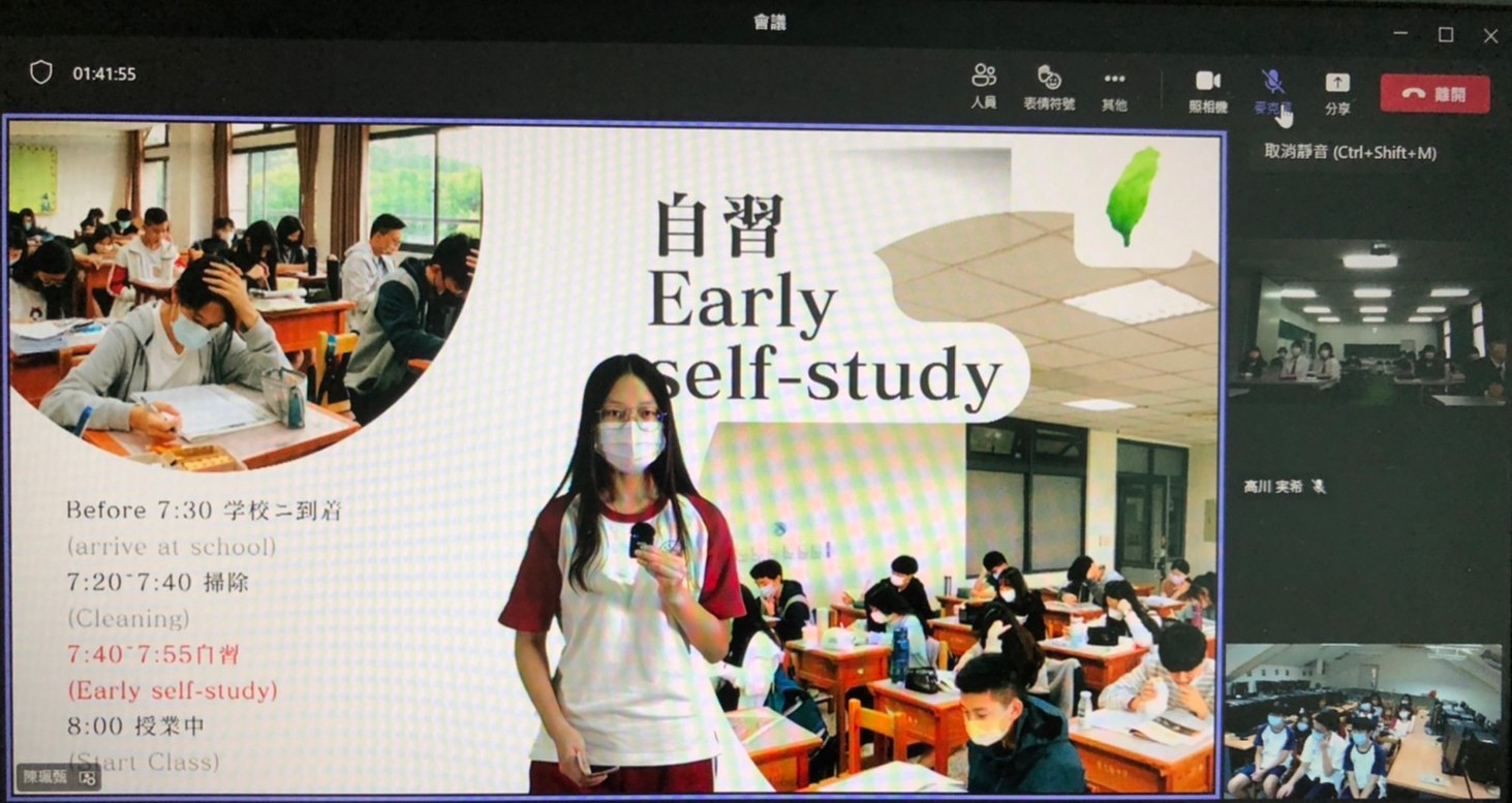 疫情持續延燒,讓原本有機會面對面的交流轉成了線上,雖然限制變多了,卻不滅雙方學生的熱情。 不知何時才可以自由出國見面的今天,學校特別架設了一個虛擬攝影棚來進行這次、以及之後可能會有的國際交流, 東大附中與日高高校的學生隔著螢幕介紹自己的國家、美食、抑或是年輕人喜愛的流行文化,雖然一開始有些生疏害羞, 但慢慢的找到彼此的共鳴,才發現,即使隔著螢幕,我們的距離原來那麼近。