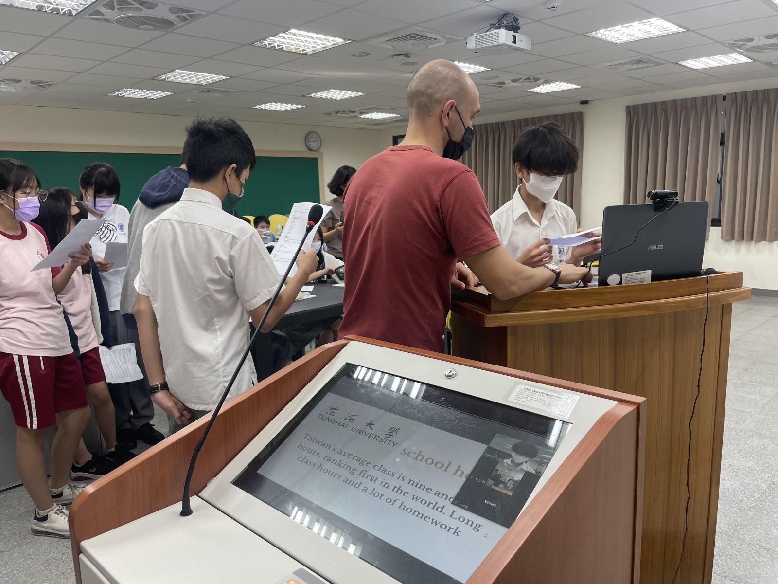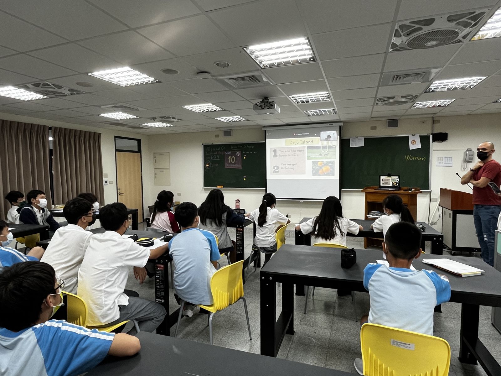 國一的同學們分成小組,每組都準備了不同主題,要將台灣的文化、美食、以及休閒娛樂介紹給韓國的學生們。