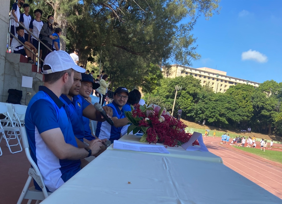 Under the encouragement of Director Ernest Chen and Teacher Clark Huang, foreign teachers took the initiative to sit at the ESPN broadcast booth, becoming the commentators for the races. This new broadcasting approach has allowed the teachers to showcase unity and liveliness, while creating a whole new atmosphere for the school sports day.
