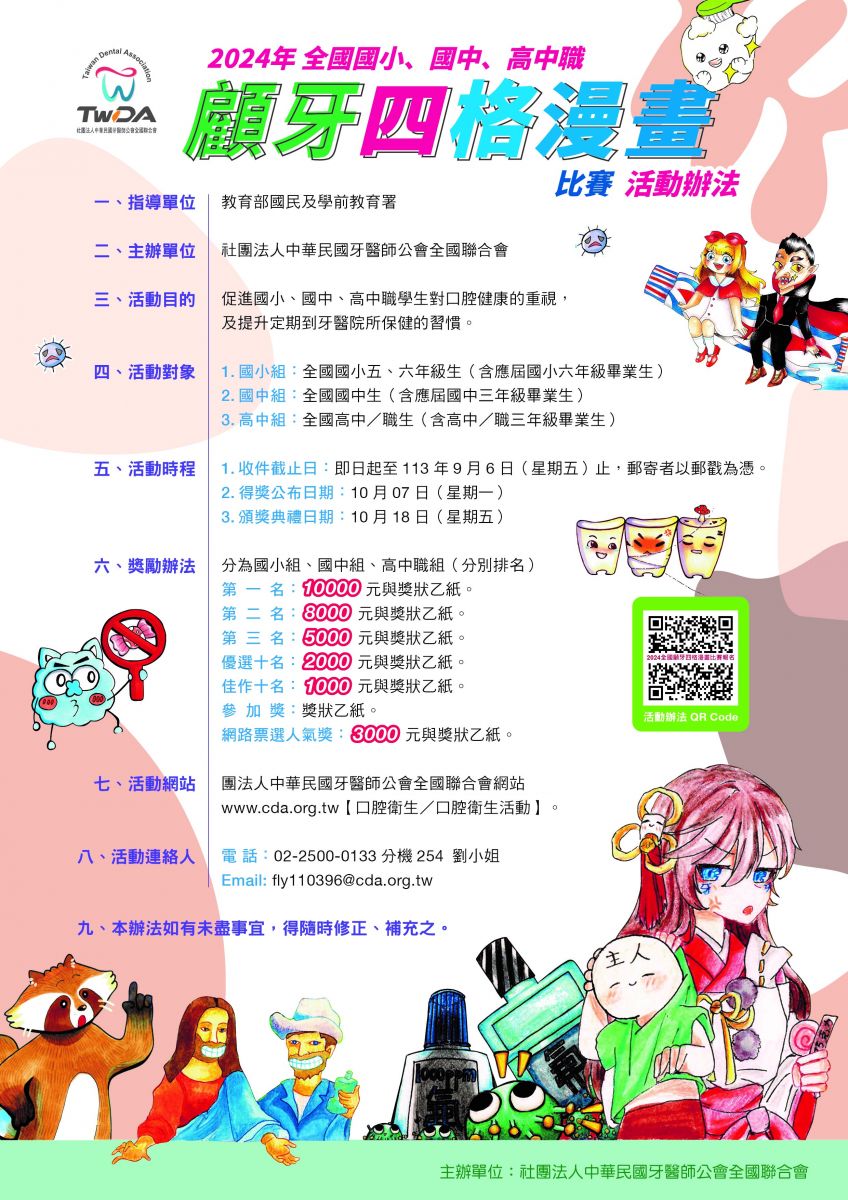 2024 年全國國小、國中、高中職顧牙四格漫畫比賽活動辦法